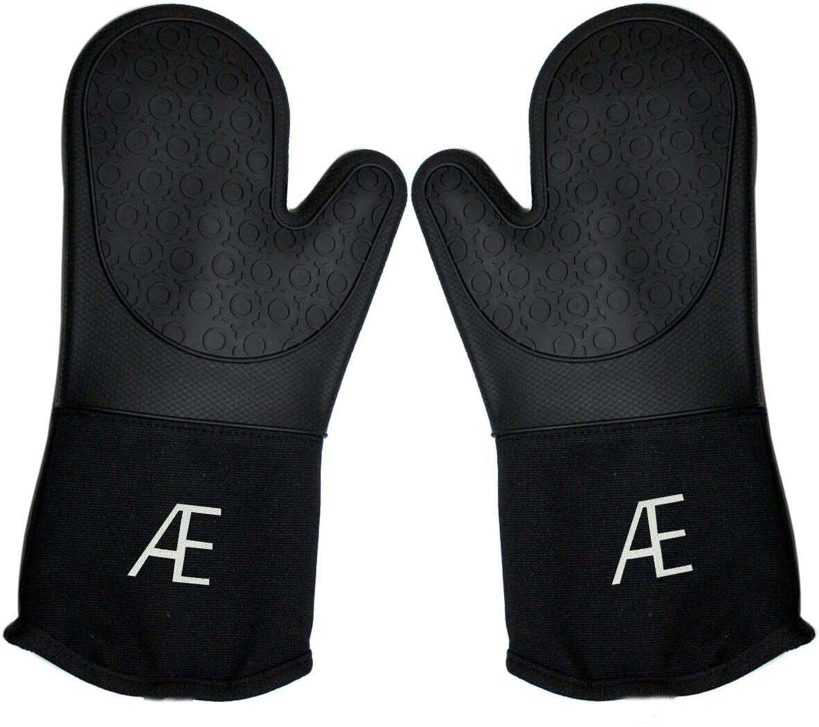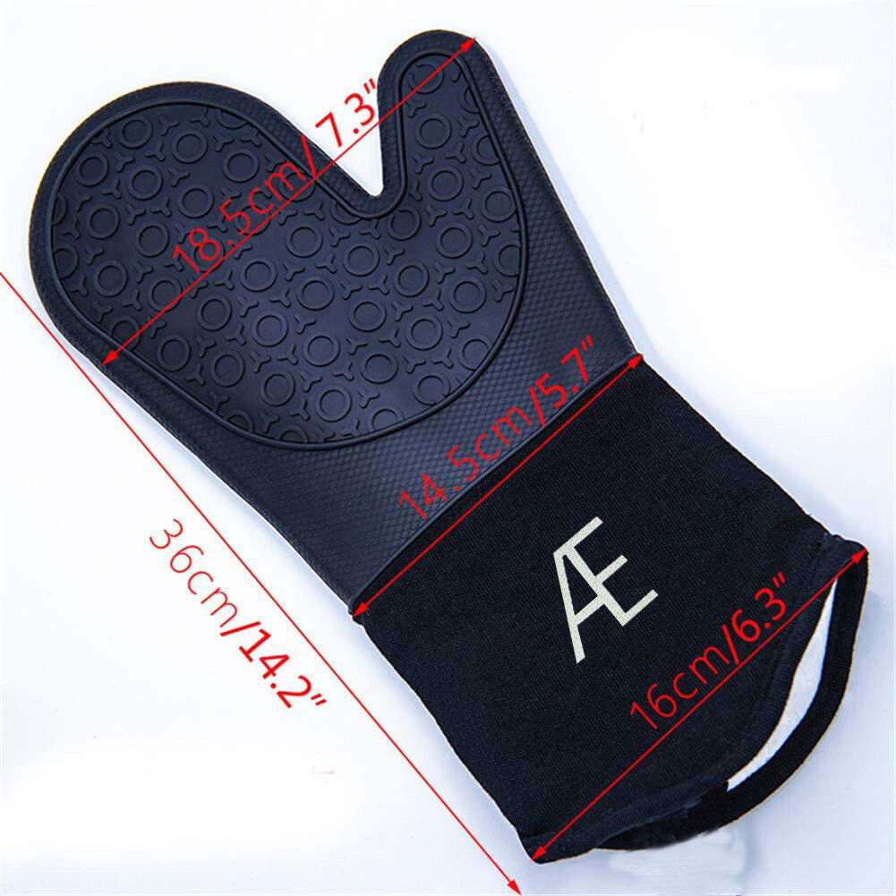 1 Pair Oven Gloves Heat Resistant Skin Friendly for Cooking Baking Solid Black